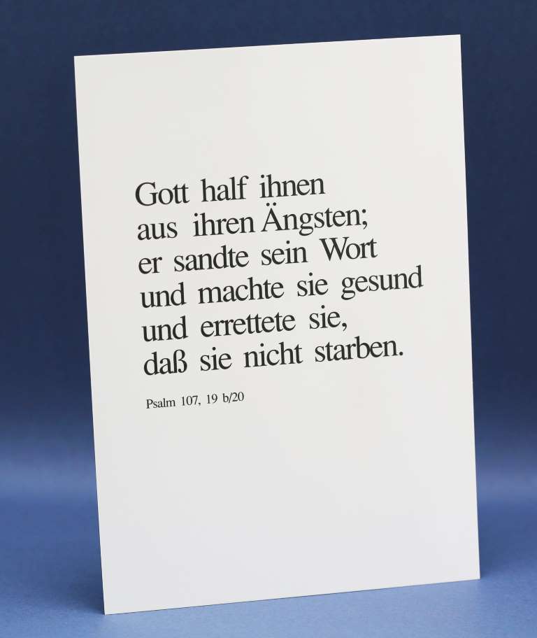Alle Bibelkarten sind schwarz gedruckt auf weissem festem Papier in der Grösse A5 (14.8 x 21 cm). Die Karten sind in einer Serie von 5 Stück erhältlich. Ideal zum Einrahmen und verschenken für einen speziellen Anlass. Zb. Zur Geburt, Taufe, Konfirmation, Hochzeit und noch vieles mehr.